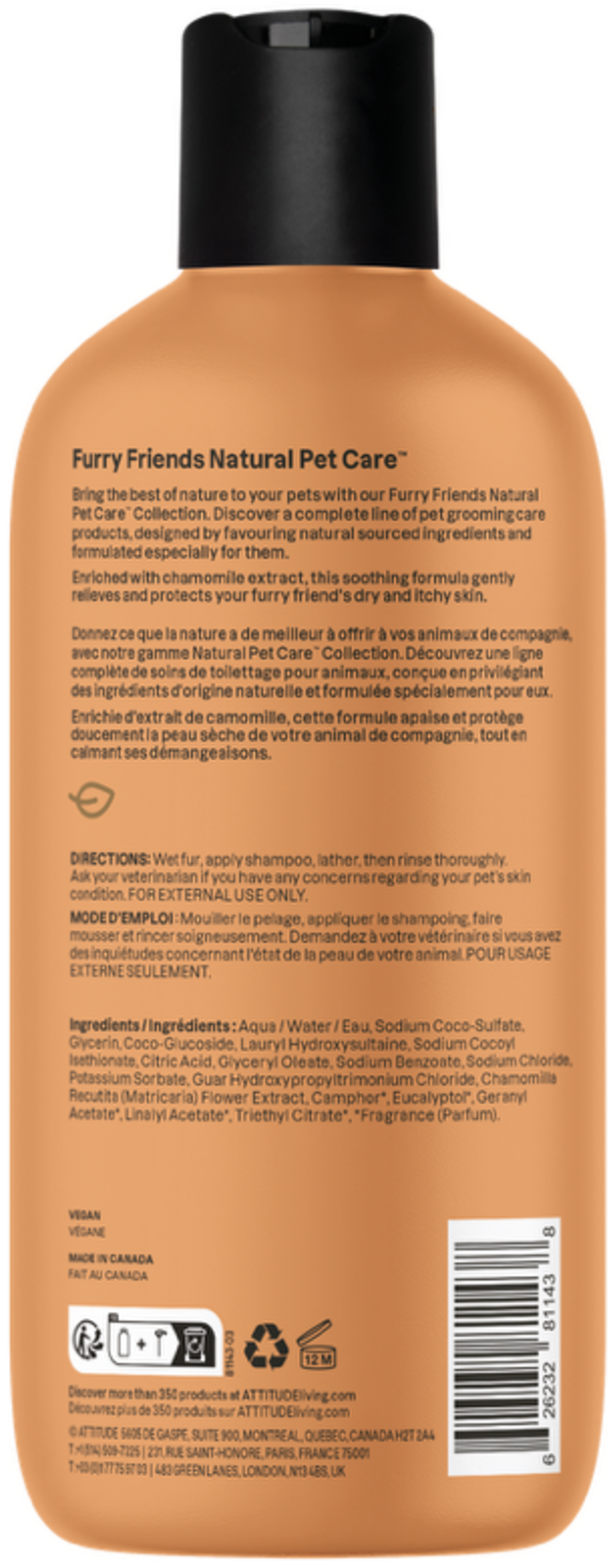 A nyugtató és védő tulajdonságokkal rendelkező kamilla kivonatokban gazdag ATTITUDE sampon optimálisan és gyengéden tisztítja a száraz, viszketésre hajlamos bőrt. Különösen enyhe tisztító anyagokat és hidratáló hatóanyagokat tartalmazó receptúrája finom levendula illatú és hipoallergén.