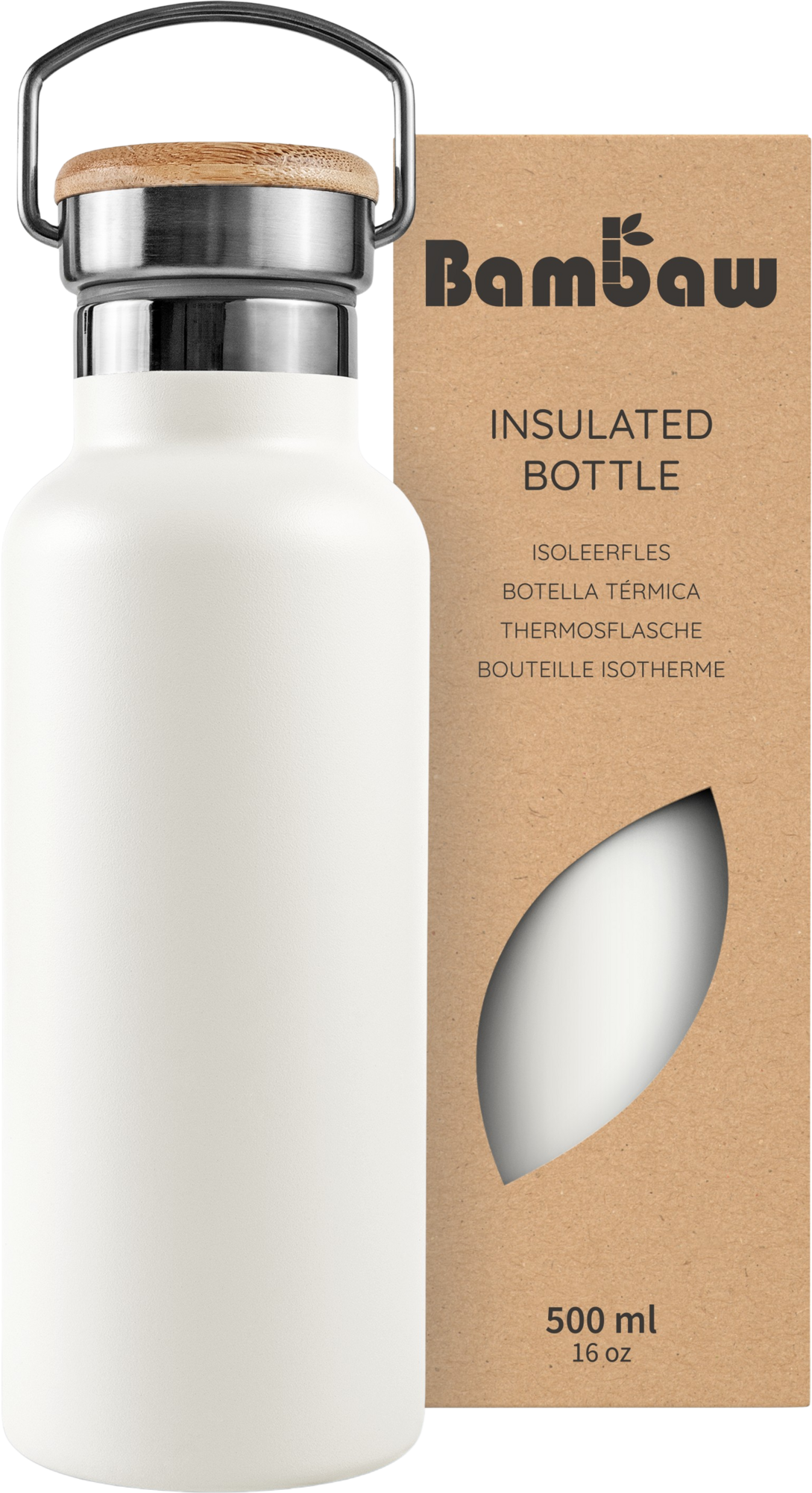 Bambaw Rozsdamentes acél termosz, 500 ml, Polar White