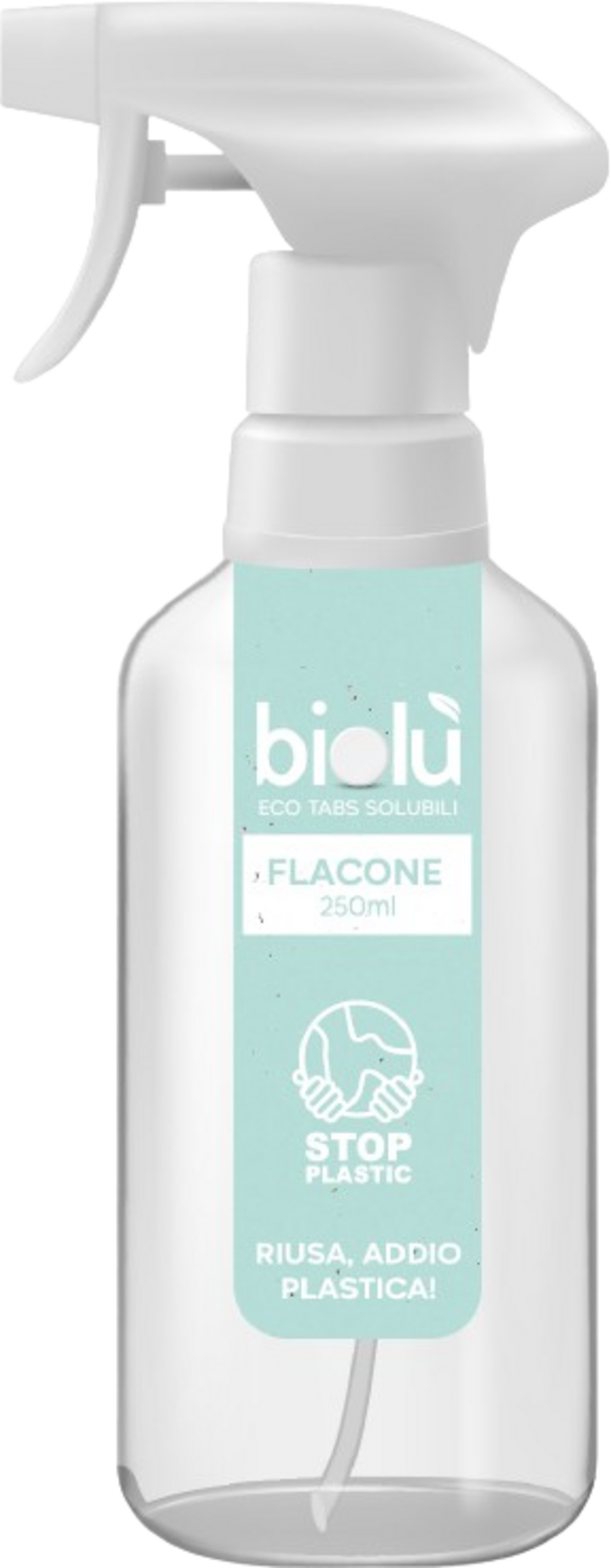 Ez az újrafelhasználható szórófejes flakon ideális a biolù Eco-Tab tisztítószerek egyszerű összekeveréséhez. Átlátszó kialakításának köszönhetően mindig láthatja, mennyi folyadék maradt. Ahelyett, hogy folyamatosan új tisztítószereket vásárolna egyszer használatos műanyag csomagolásban, otthon újra és újra utántöltheti a flakont.