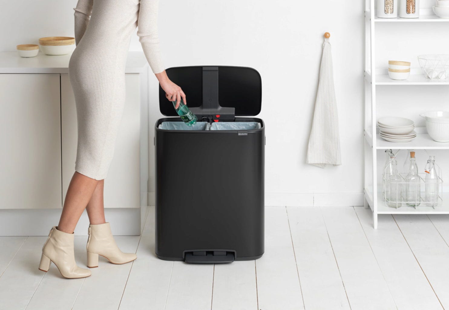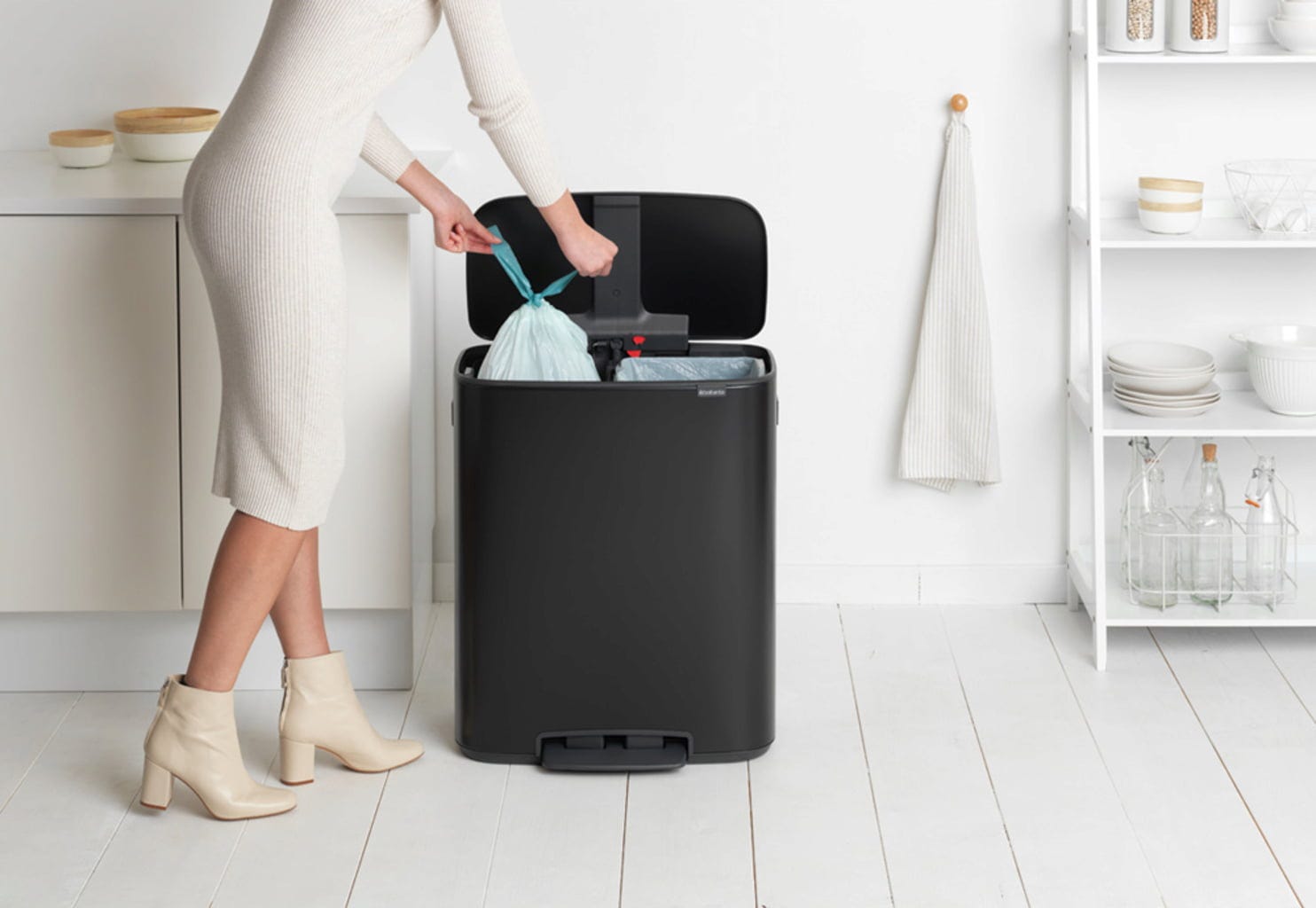A Brabantia innovatív hulladékkezelő rendszere a maximális funkcionalitás és a stílusos design kombinációját jelenti, így egyedülállóan vonzó hulladékkezelési megoldásokat kínál. Ez a két kivehető műanyag betéttel ellátott Bo pedálos szemetes kivételesen esztétikus kialakításával és okos konstrukciójával is lenyűgöz, így minden jól szervezett háztartásban nélkülözhetetlen darab.