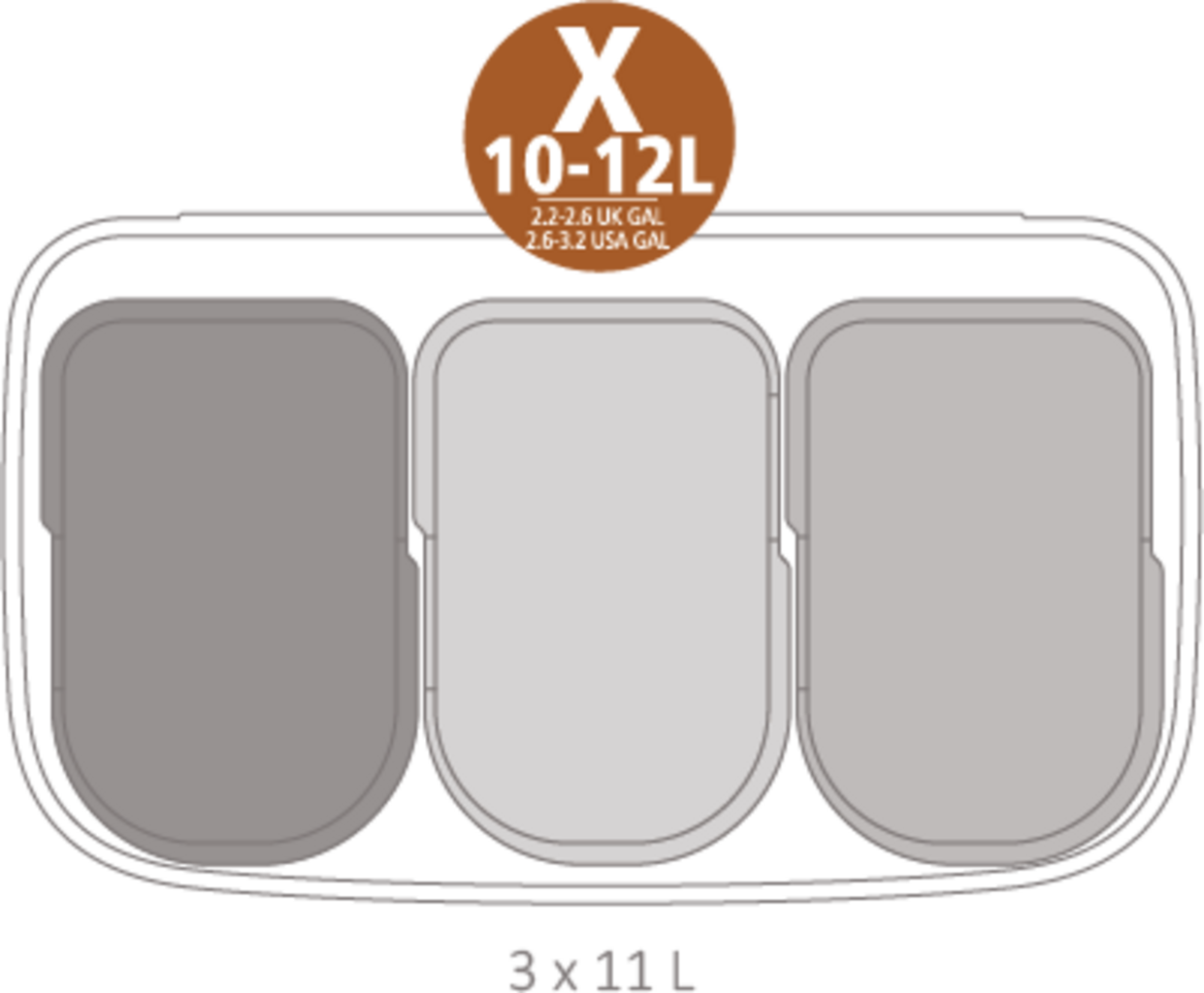 - 3 kivehető műanyag betét - mindegyik 11 literes - ideális az otthoni hulladék szétválasztásához