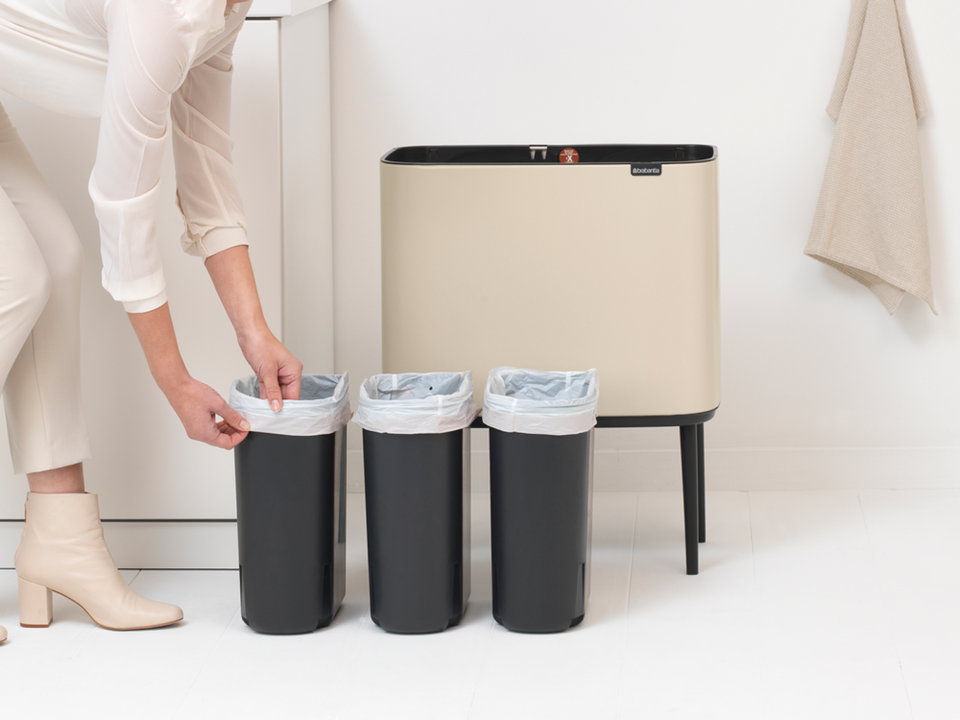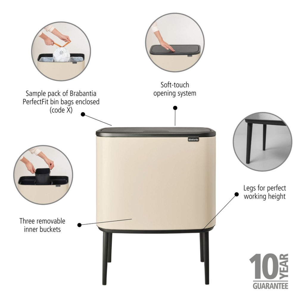 brabantia Bo Touch Bin 3 x 11 literes szemetes 3 műanyag betéttel, Soft Beige