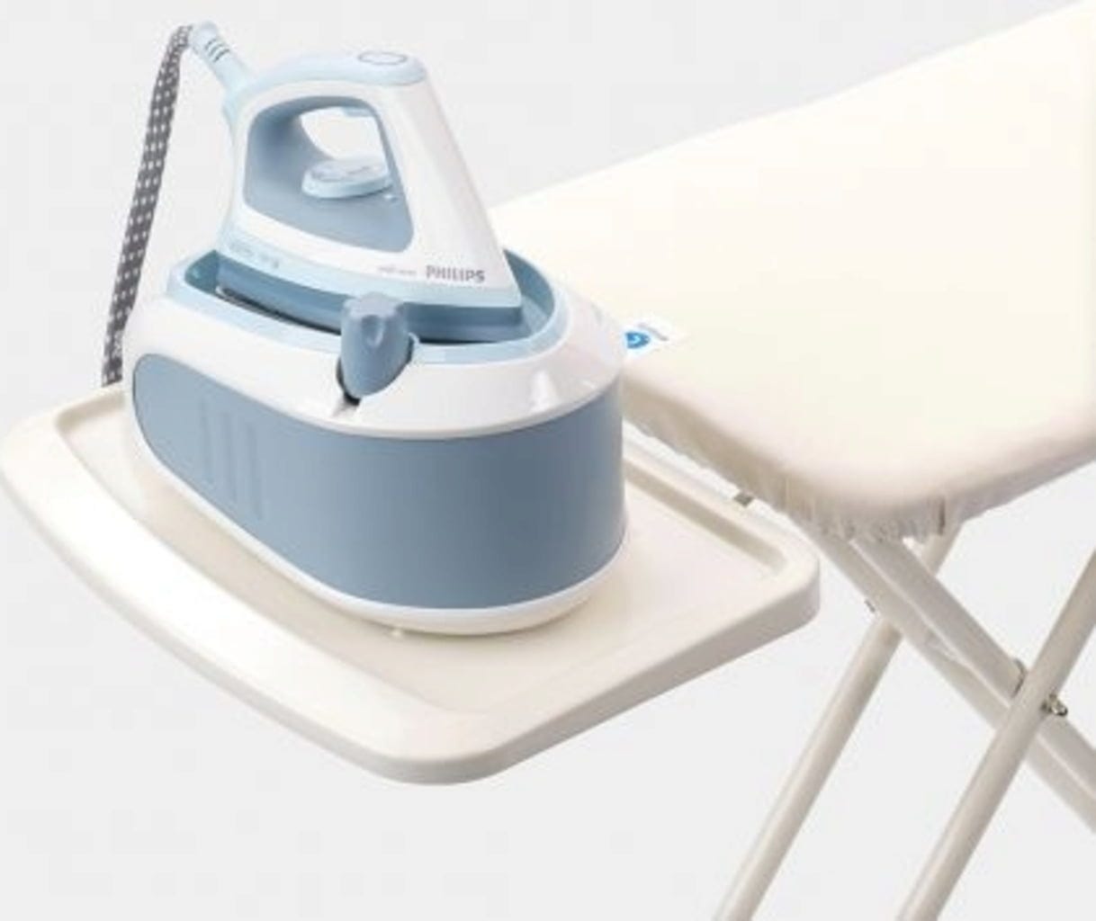 Extra széles vasalódeszka masszív polccal gőzállomásokhoz. A nagyobb szélesség nagyobb kényelmet biztosít, a deszka magassága állítható, valamint könnyen és gyorsan összecsukható. A védőlábak megakadályozzák a csúszást, a vasalódeszka huzata pedig 100% pamutból készült, habréteggel.