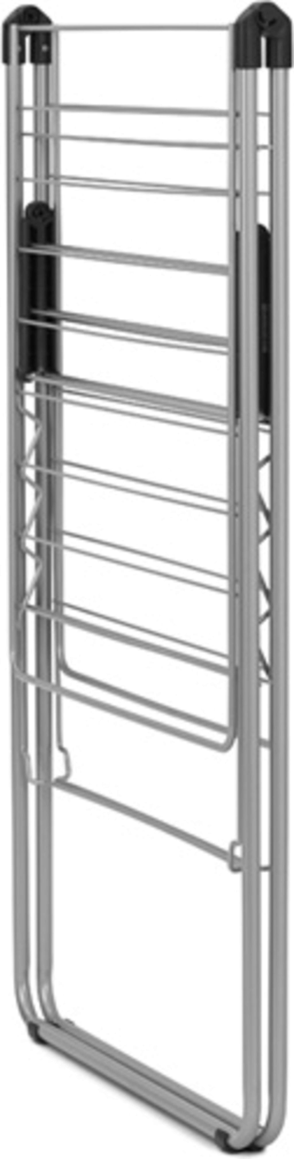 Ez az egyedülállóan rugalmas ruhaszárító állvány tartós acélból készült, és nemcsak kiváló minőségű anyagaival és kidolgozásával nyűgöz le, hanem mindenekelőtt okos kialakításával, amely számos praktikus és funkcionális részletet tartalmaz. Akár 20 méternyi szárítófelületet kínál kis és nagy ruhadarabok számára, az állítható szárnyaknak köszönhetően kivételesen rugalmas, és könnyen összecsukható a helytakarékos tárolás érdekében.