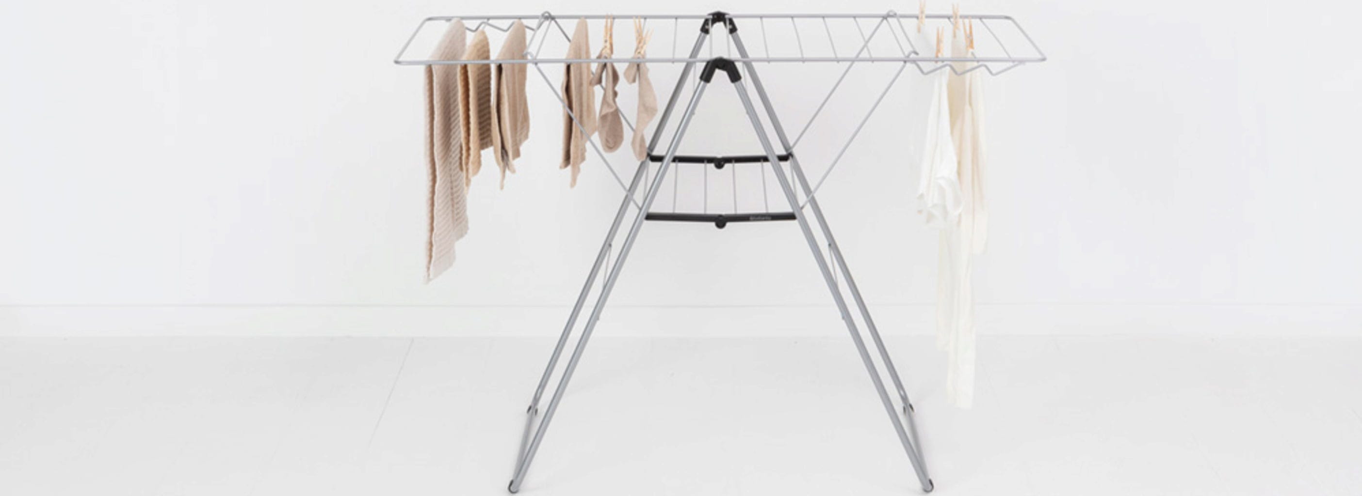 Különösen praktikus: A háromszög alakú keretkialakításnak köszönhetően a szárnyak egyenként is kihajthatók, vagy különböző magasságokban használhatók anélkül, hogy a ruhaszárító állvány felborulna.
