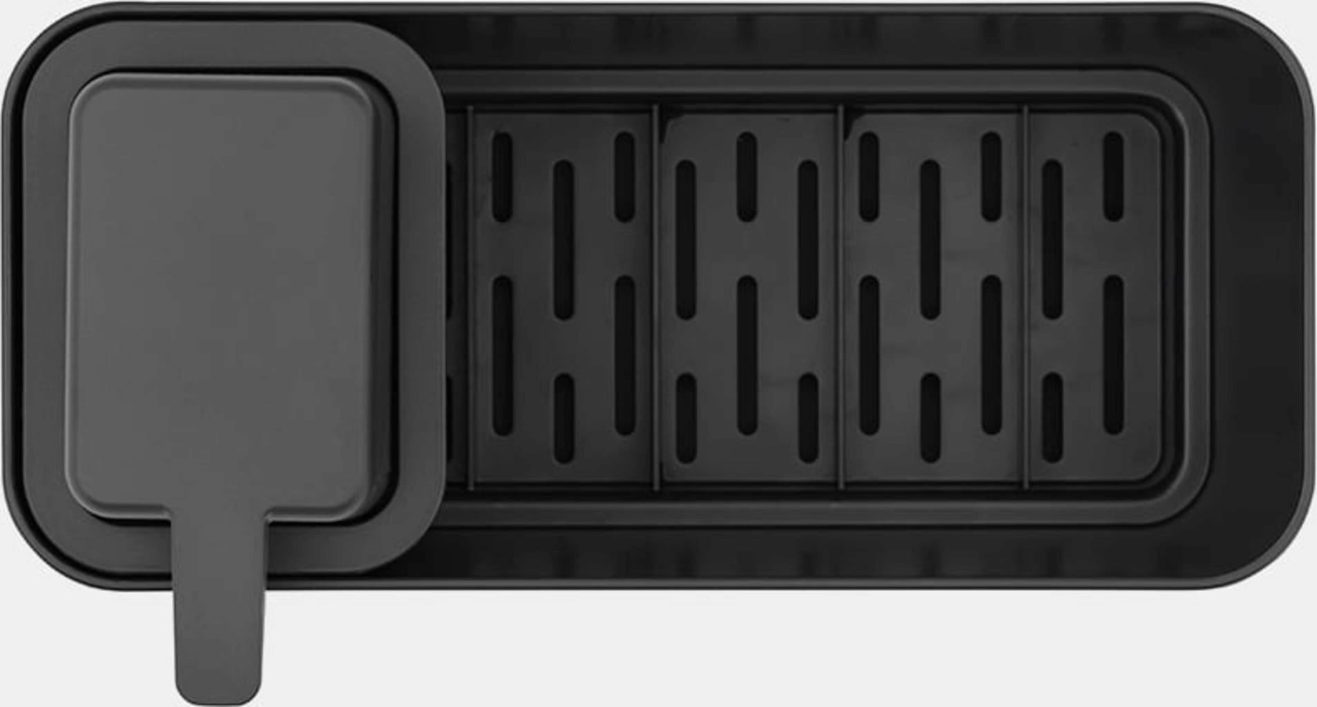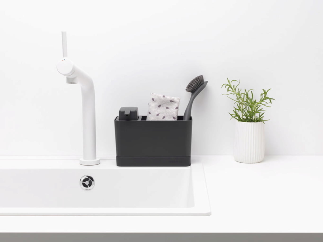 A tökéletes szervezettség és rend a siker fele. Ezzel a mosogató rendszerező és szappanadagoló készlettel a konyhai munkafelület tiszta marad, miközben minden könnyen elérhető. A szappanadagoló akár 250 ml folyékony szappant vagy mosogatószert is képes befogadni, egy kézzel is kezelhető, és cseppmentes. Emellett rengeteg hely van szivacsoknak, kendőknek és mosogató keféknek is.
