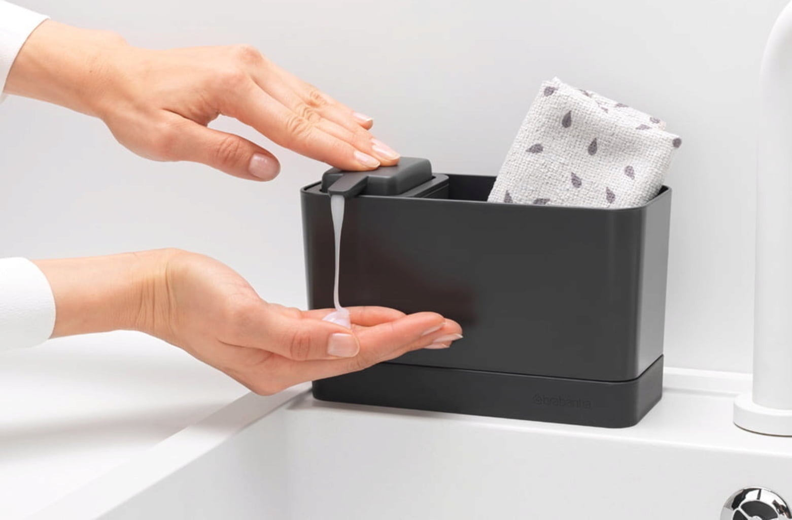- A szappanadagoló beleillik a mosogató rendszerezőbe