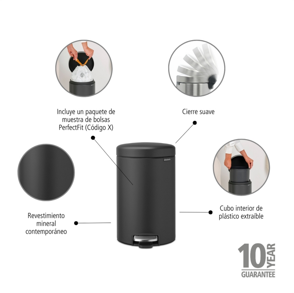 brabantia Newicon Lábbal nyitható szemetes műanyag betéttel - 12l, Mineral Infinite Grey