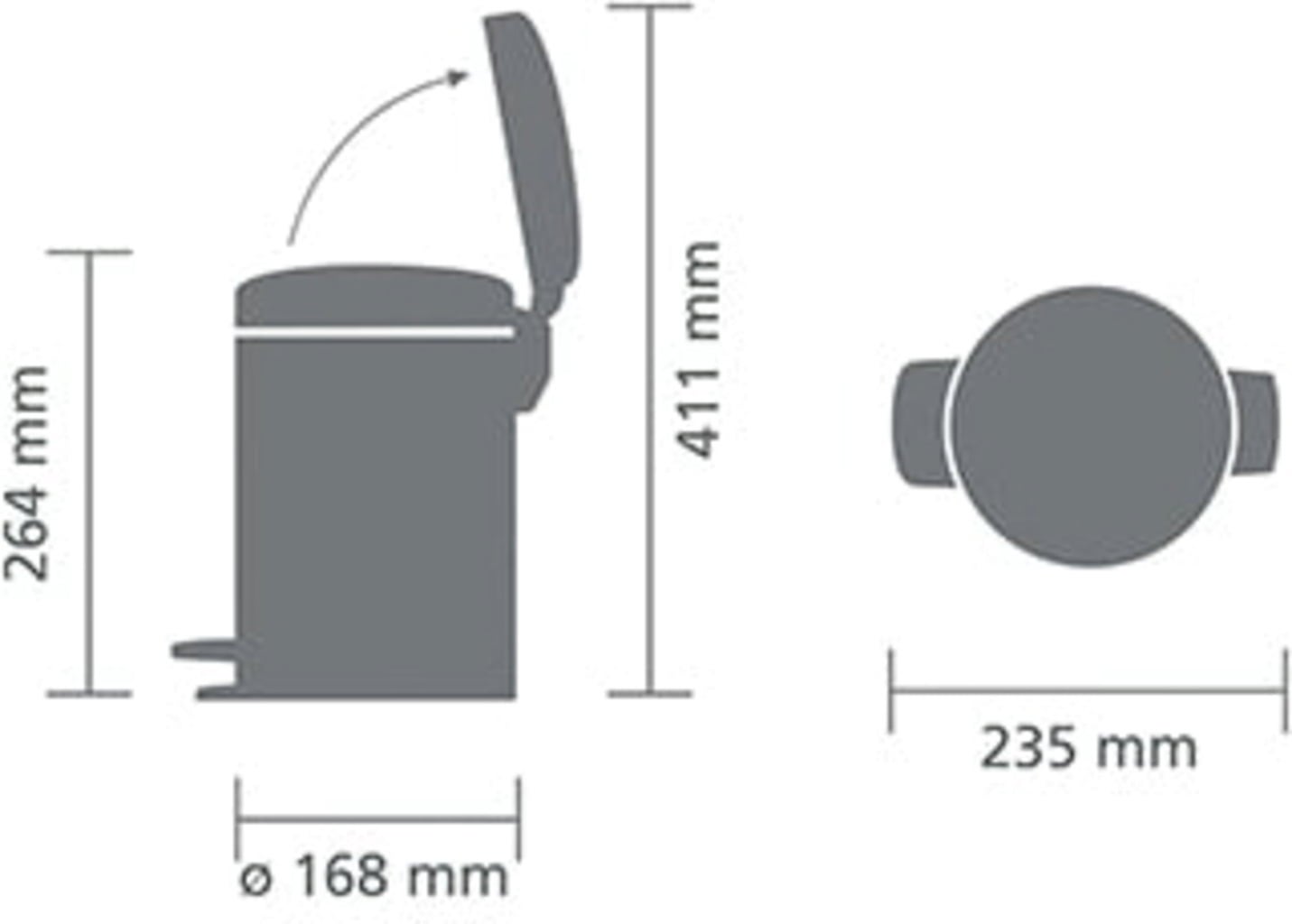 brabantia Newicon Lábbal nyitható szemetes műanyag betéttel - 3l, Confident Grey