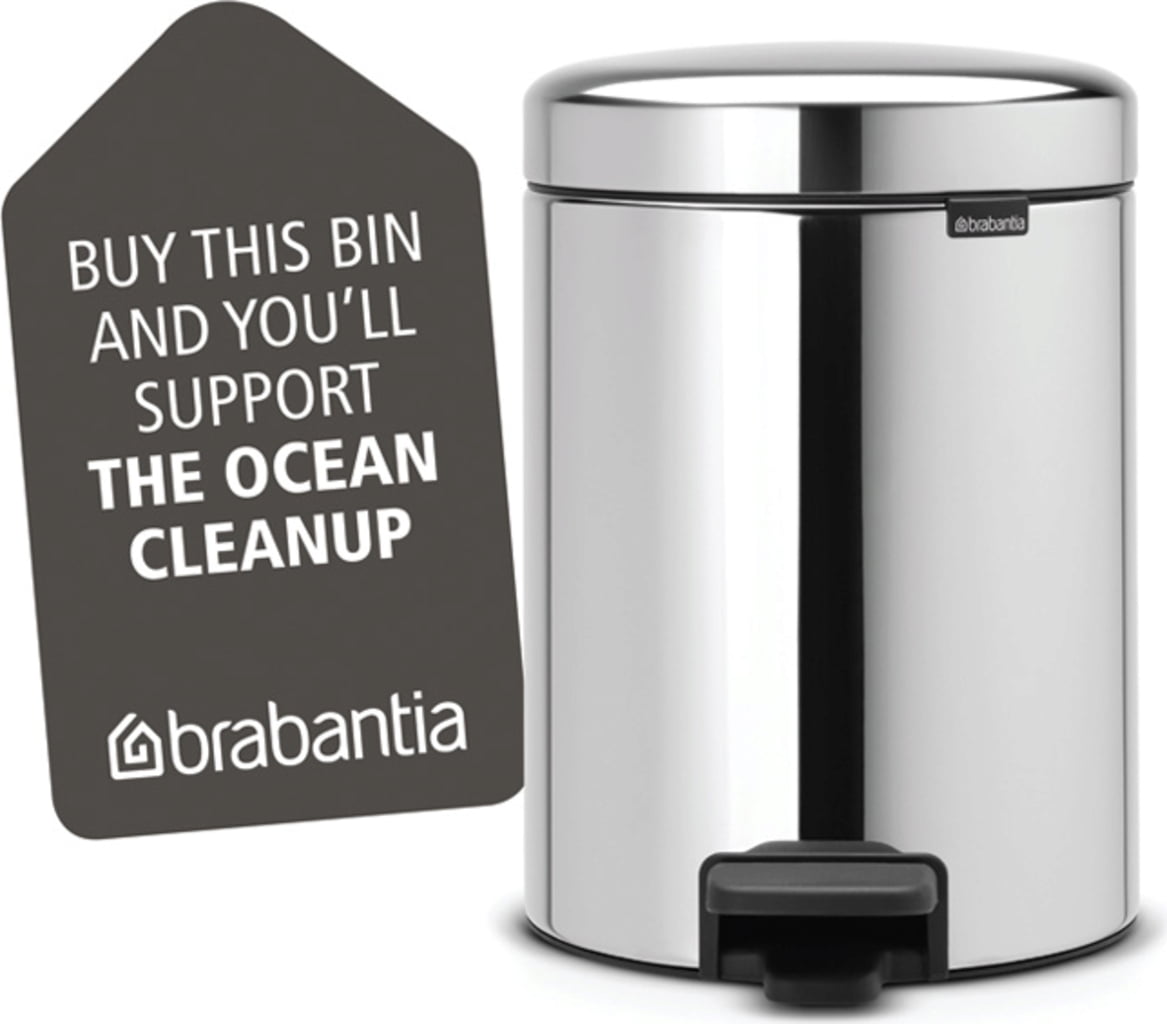 brabantia Newicon Lábbal nyitható szemetes műanyag betéttel - 5l, Brilliant Steel