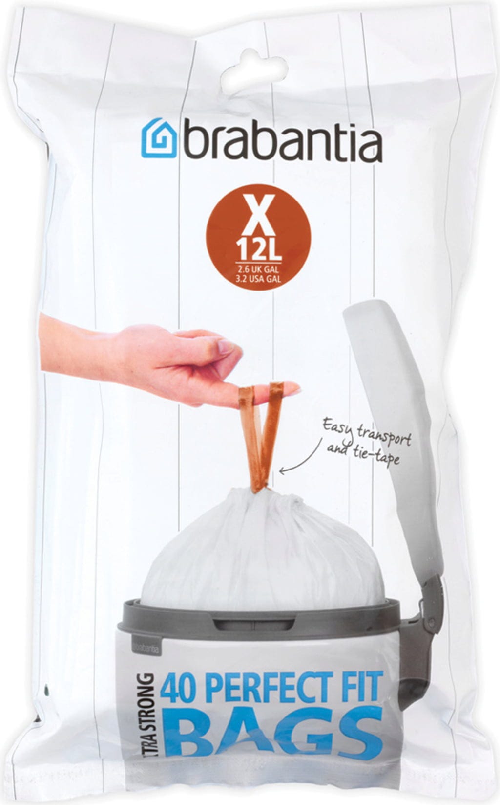 Ezek a szemeteszsákok pontosan illeszkednek a megfelelő űrtartalmú Brabantia kukákhoz. Az integrált húzózsinórnak köszönhetően könnyen zárhatók és hordozhatók, valamint különösen tartós, nagy sűrűségű polietilénből (HDPE) készültek, így rendkívül robusztusak. Továbbá, a hagyományos szemeteszsákokkal ellentétben, ugyanolyan könnyen kivehetők az adagolóboxból, mint egy papírzsebkendő, mivel nincsenek feltekerve.