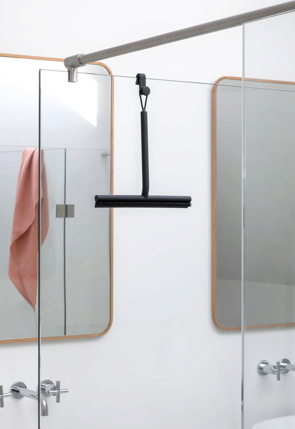 Ahhoz, hogy a zuhanykabin üvege tiszta és szép maradjon, használja minden nap ezt a modern zuhanykabin-lehúzót. Egyik oldalán kefével, másik oldalán gumival rendelkezik, így könnyedén tisztíthatja a zuhanykabin ajtaját és csempéit. A mellékelt kampóval a zuhanykabin ajtajára akaszthatja. Praktikus és stílusos.