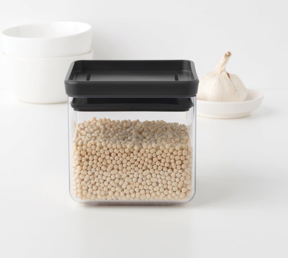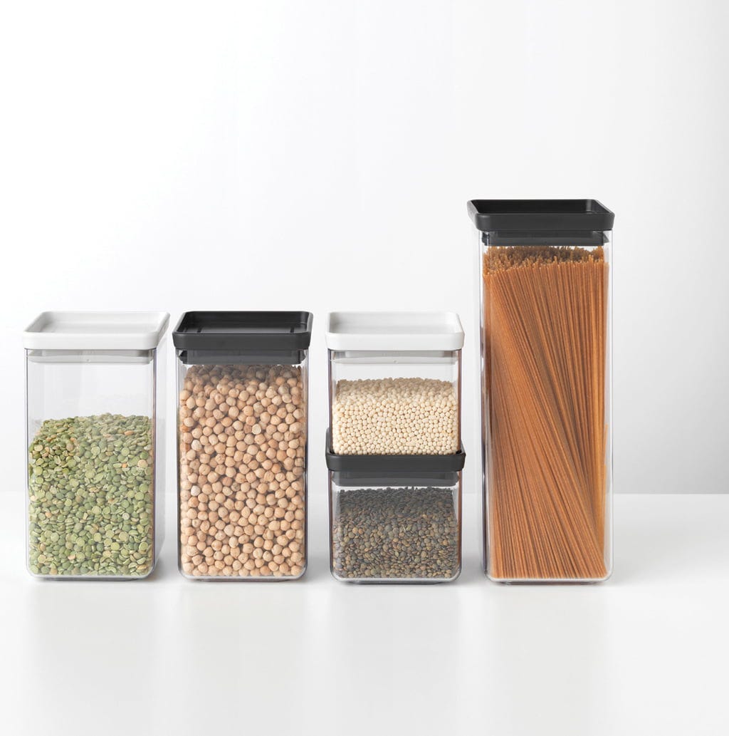 A Brabantia Tasty+ termékcsaládjának átlátszó műanyag tárolói rendet tartanak a konyhaszekrényben. A különböző méretű, helytakarékosan egymásra helyezhető dobozok megbízhatóan frissen tartják az élelmiszereket, és a tartalmuk egy pillantásra látható.