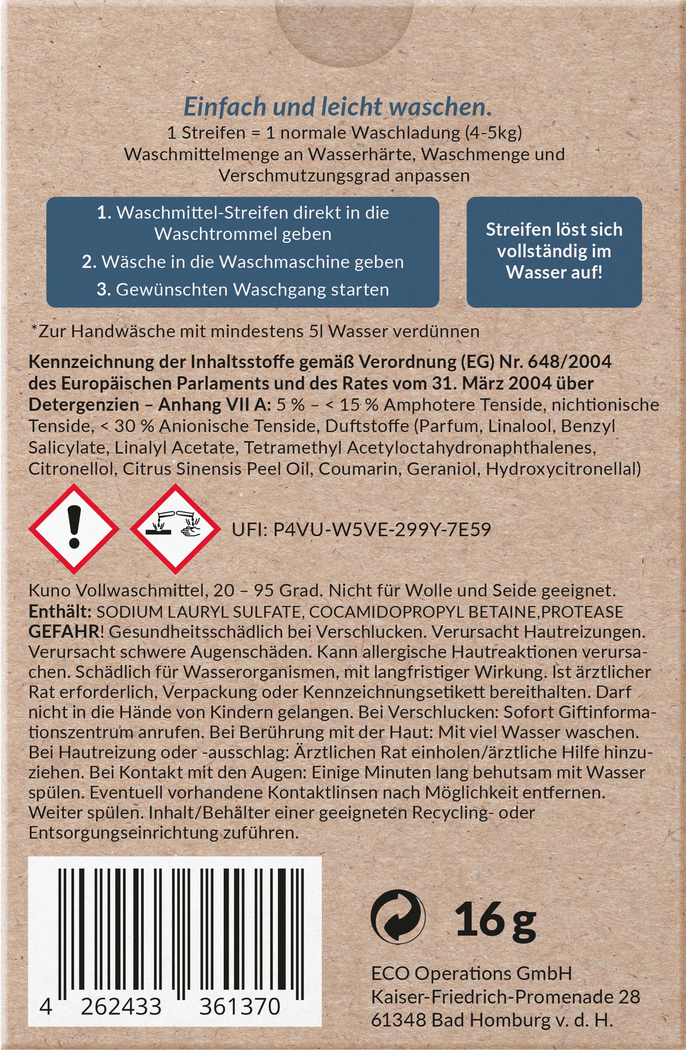 - 1 csík = 1 mosás (4-5 kg)