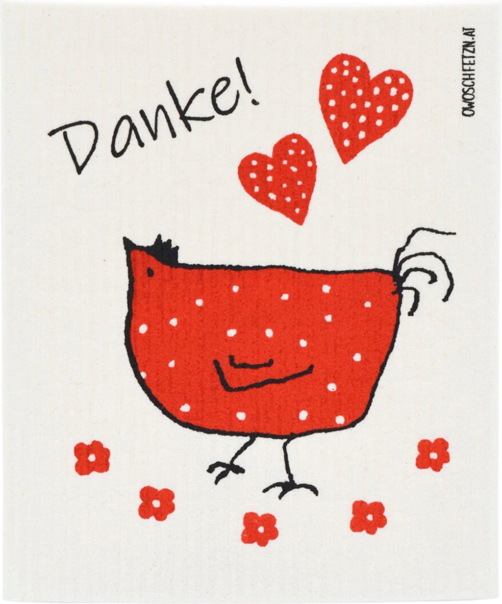 OWOSCHFETZN "Berta tyúk - Köszönöm" szivacskendő , Piros