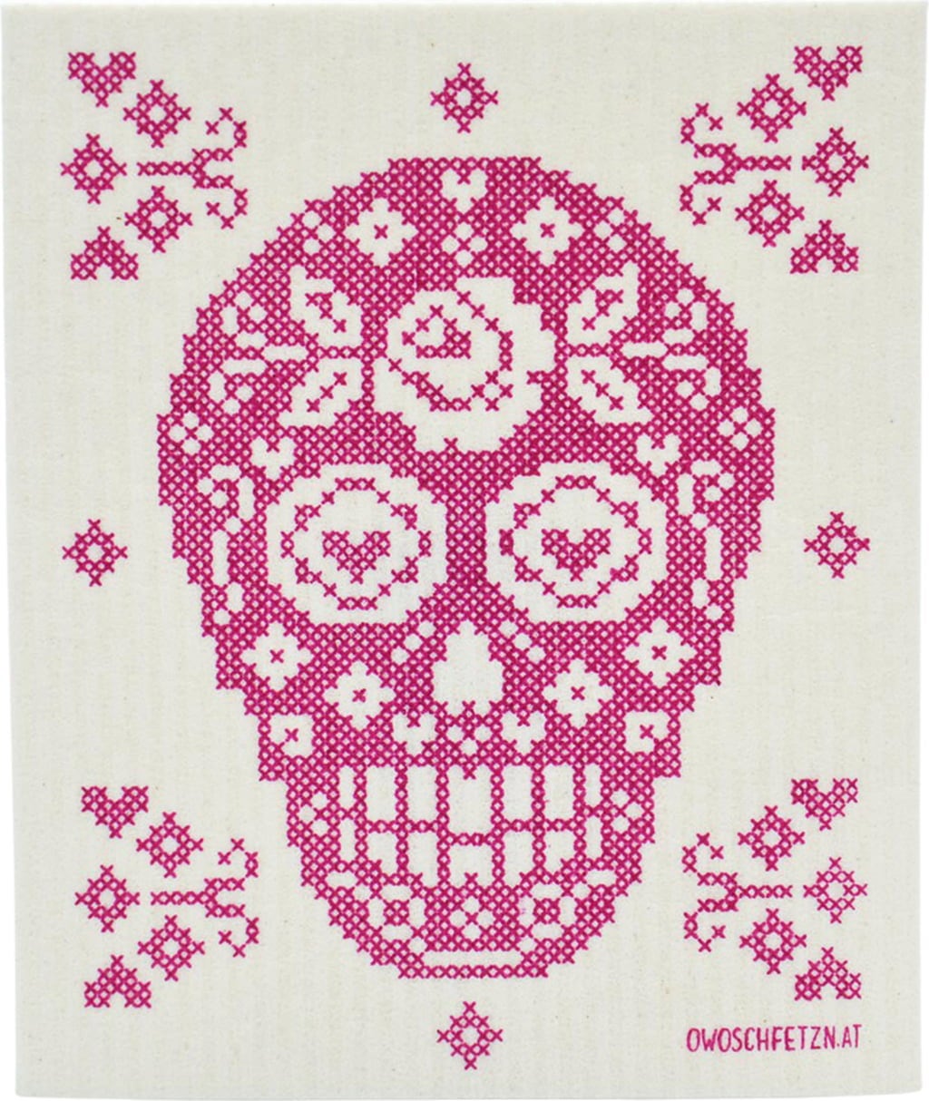 OWOSCHFETZN "Keresztszemes koponya-hímzés" szivacskendő, Rózsaszín