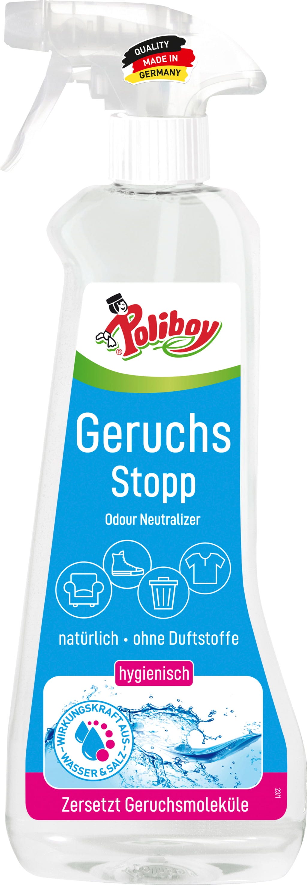 A Poliboy Szag Stop segít megszüntetni a kellemetlen, szerves szagokat otthonában. A tisztítószer alkalmas műanyagok (pl. szemetesek), valamint nem érzékeny textíliák (szőnyegek, jógamatracok, cipők stb.) kezeléséhez, és eltávolítja az ételmaradékok, vizelet, hányás és izzadság szagokat. Az elektrokémiailag aktivált vizet és sót tartalmazó formula lebontja a molekulákat az elfedés helyett, így tartós semlegesítést biztosít.